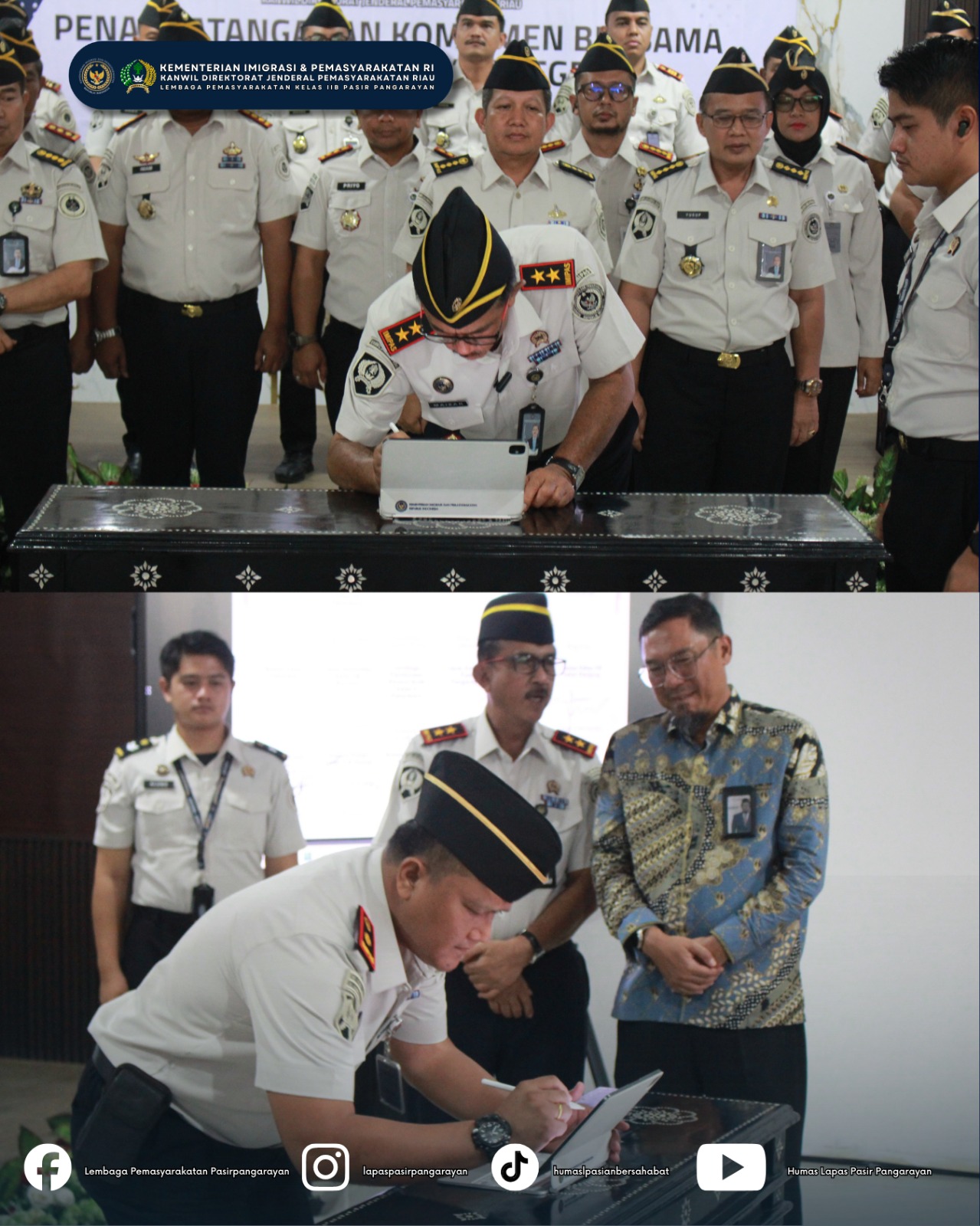 Penandatanganan komitmen bersama tersebut ditandatangani oleh Kepala Kantor Wilayah Direktorat Jenderal Pemasyarakatan Riau, Maizar, serta diikuti oleh seluruh Kepala UPT Pemasyarakatan se-Riau, sebagai simbol komitmen bersama dalam mendukung pembangunan Zona Integritas menuju Wilayah Bebas dari Korupsi (WBK) dan Wilayah Birokrasi Bersih dan Melayani (WBBM).