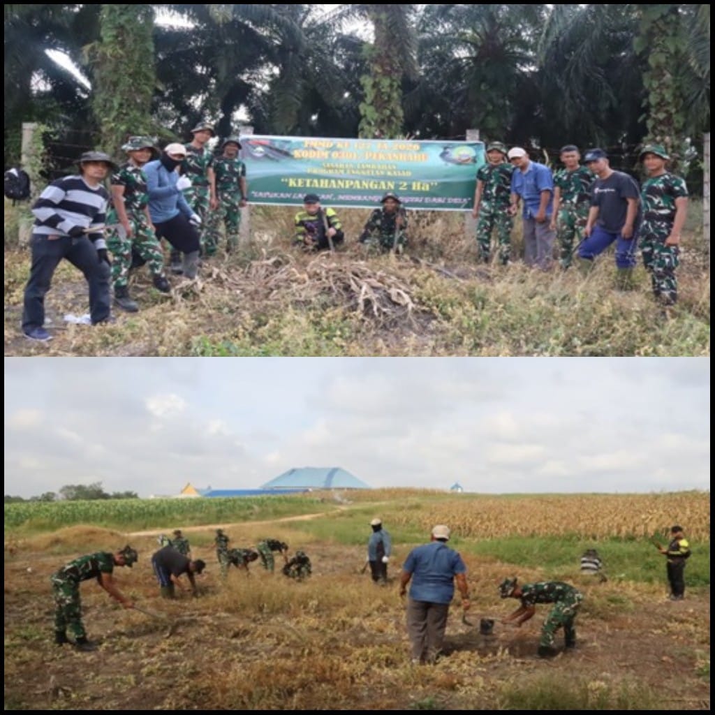 PEKANBARU – Dalam upaya mendukung program pemerintah terkait ketahanan pangan nasional, Satgas TMMD ke-127 Kodim 0301/Pekanbaru melaksanakan kegiatan non-fisik berupa penanaman jagung, cabai, dan ubi di lahan seluas 2 hektar. Kegiatan ini dilaksanakan di RT 03 RW 01 Kelurahan Melebung, Kecamatan Tenayan Raya, Kota Pekanbaru, Selasa (10/3/2026).