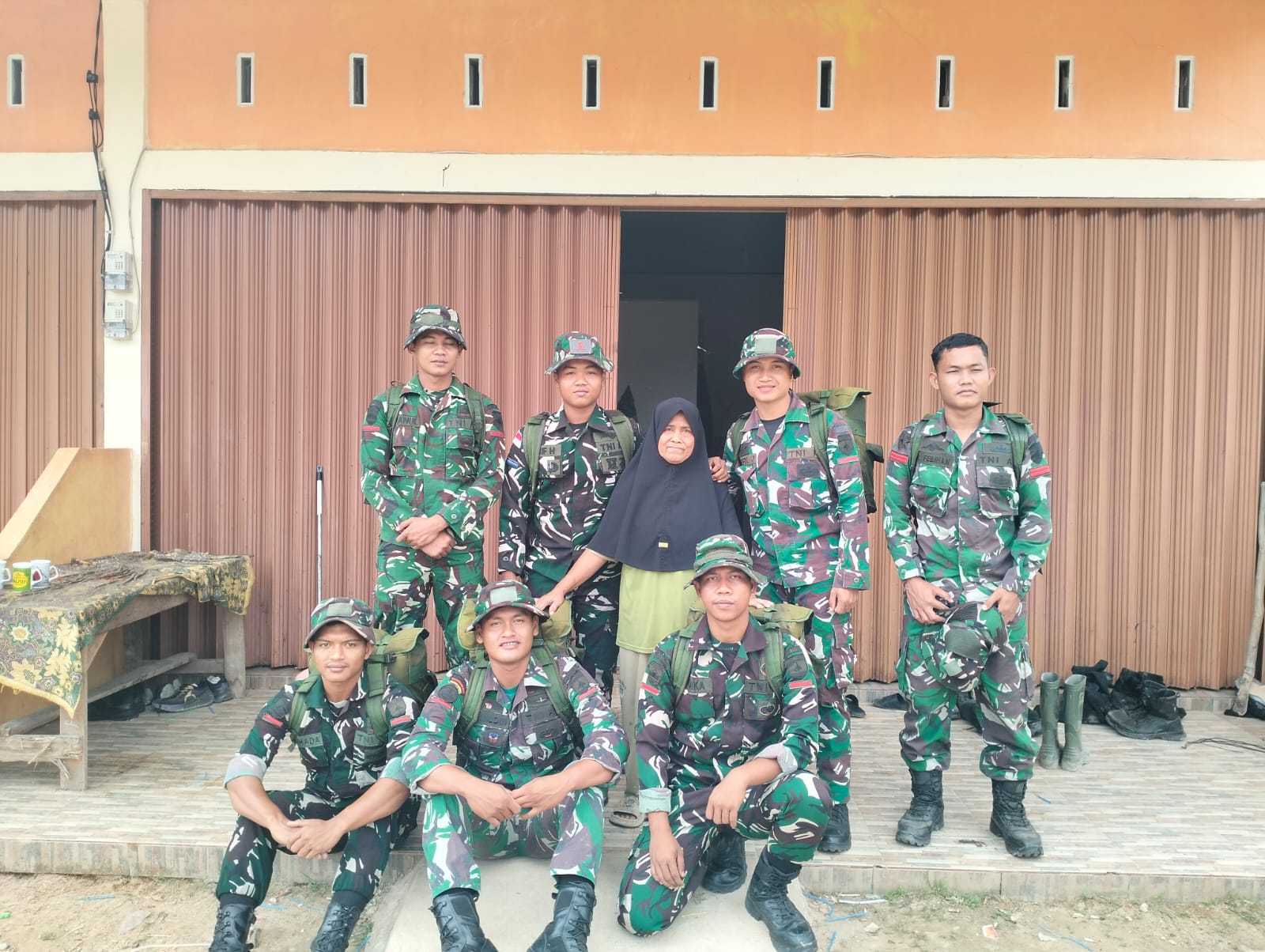 Sertu Dedi bersama rekan-rekannya selama pelaksanaan TMMD tinggal di rumah Ibu Nova. Selama 30 hari, keluarga tersebut dengan tulus menerima para prajurit, menyediakan tempat beristirahat, serta menjalin kebersamaan yang penuh keakraban.