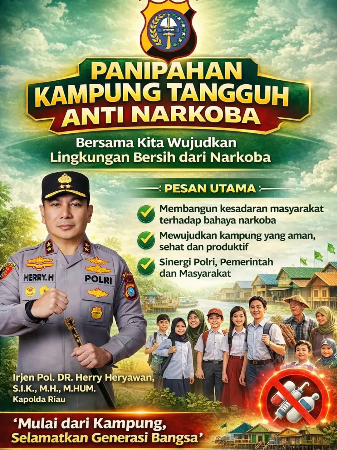 Kapolda Riau, Herry Heryawan, menegaskan bahwa perang terhadap narkoba tidak bisa hanya mengandalkan aparat penegak hukum. Diperlukan keterlibatan aktif seluruh elemen masyarakat untuk membangun benteng sosial yang kuat dari tingkat paling bawah, yakni kampung.