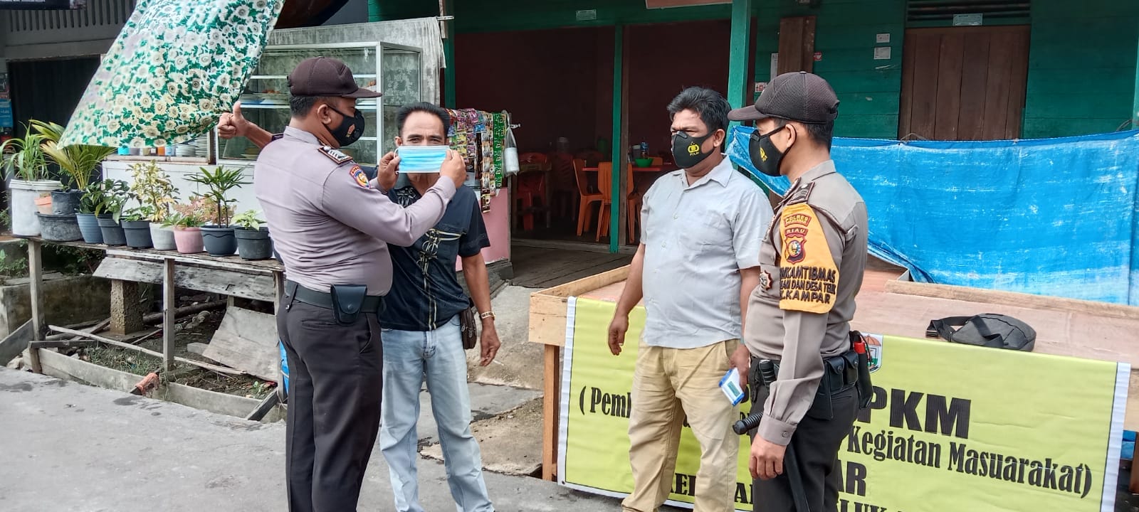 Dukung PPKM, Polsek Kuala Kampar Lakukan Penertiban Prokes di Wilayahnya