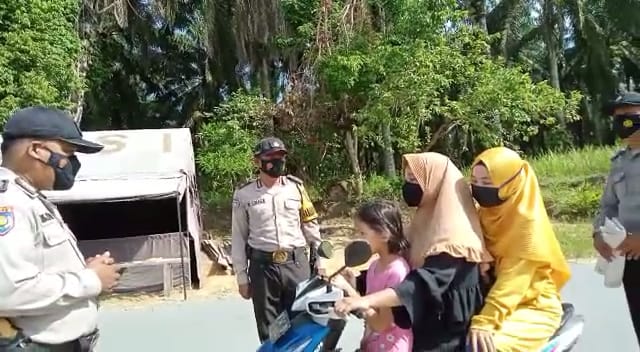 Sambangi Pengguna Jalan, Patroli Polsek Kerumutan Himbau Warga Patuhi Prokes