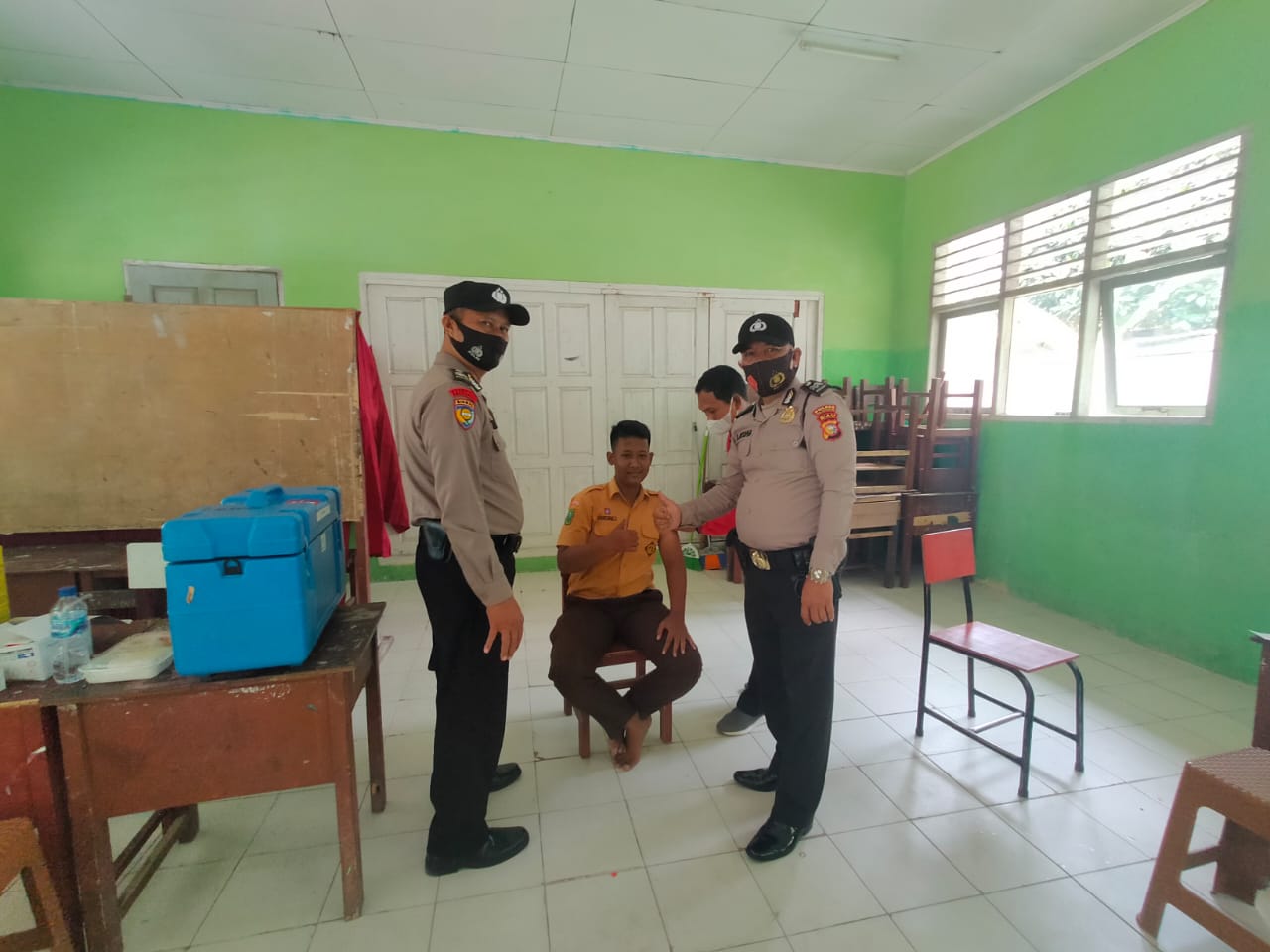 Sebagai vaksinator didatangkan dari Blud Puskesmas Bersinar Kecamatan Pangkalan Lesung yang dipimpin oleh Kepala Puskesmas Bersinar Rita Widuri didampingi Kapolsek Pangkalan Lesung Iptu Liston Sihombing dan anggota.