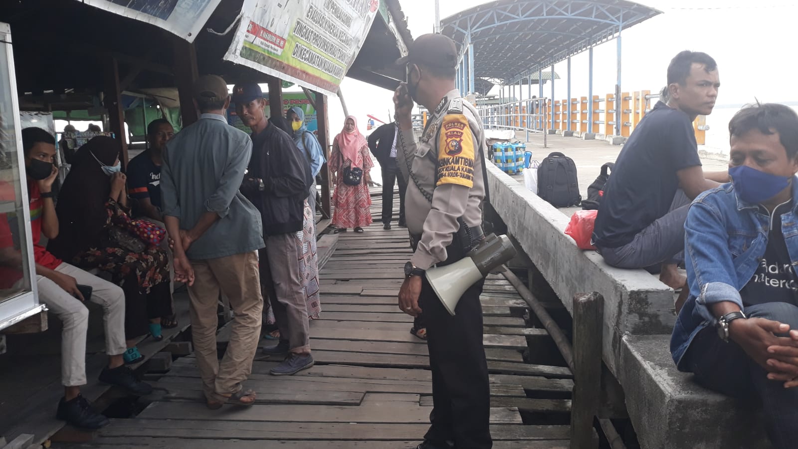 Argoterkini.com – Kapolsek Kuala Kampar, AKP Hanova Siagian bersama sejumlah personel gabungan dari berbagai unsur, Jumat (17/12/2021) memantau langsung Pemberlakuan Pembatasan Kegiatan Masyarakat (PPKM) Berbasis Mikro di pelabuhan penyebrangan orang, Kelurahan Teluk Dalam.