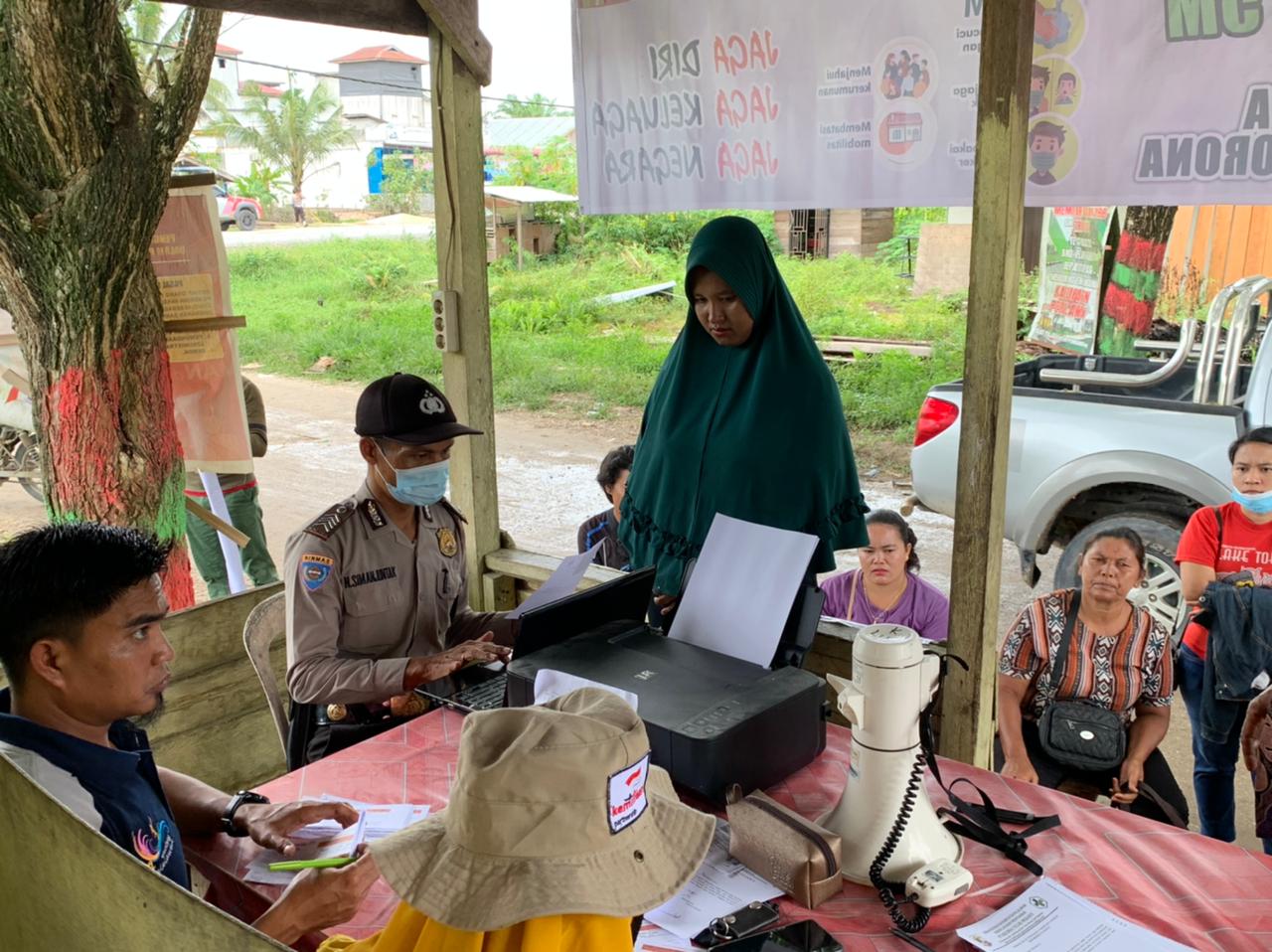 Argoterkini.com – Kapolsek Teluk Meranti, Ipda Rahmat bersama sejumlah personil mengawal langsung jalannya kegiatan vaksinasi Covid-19 di Posko PPKM, Kelurahan Rambutan, Kelurahan Teluk Meranti pada Minggu (19/12/2021).