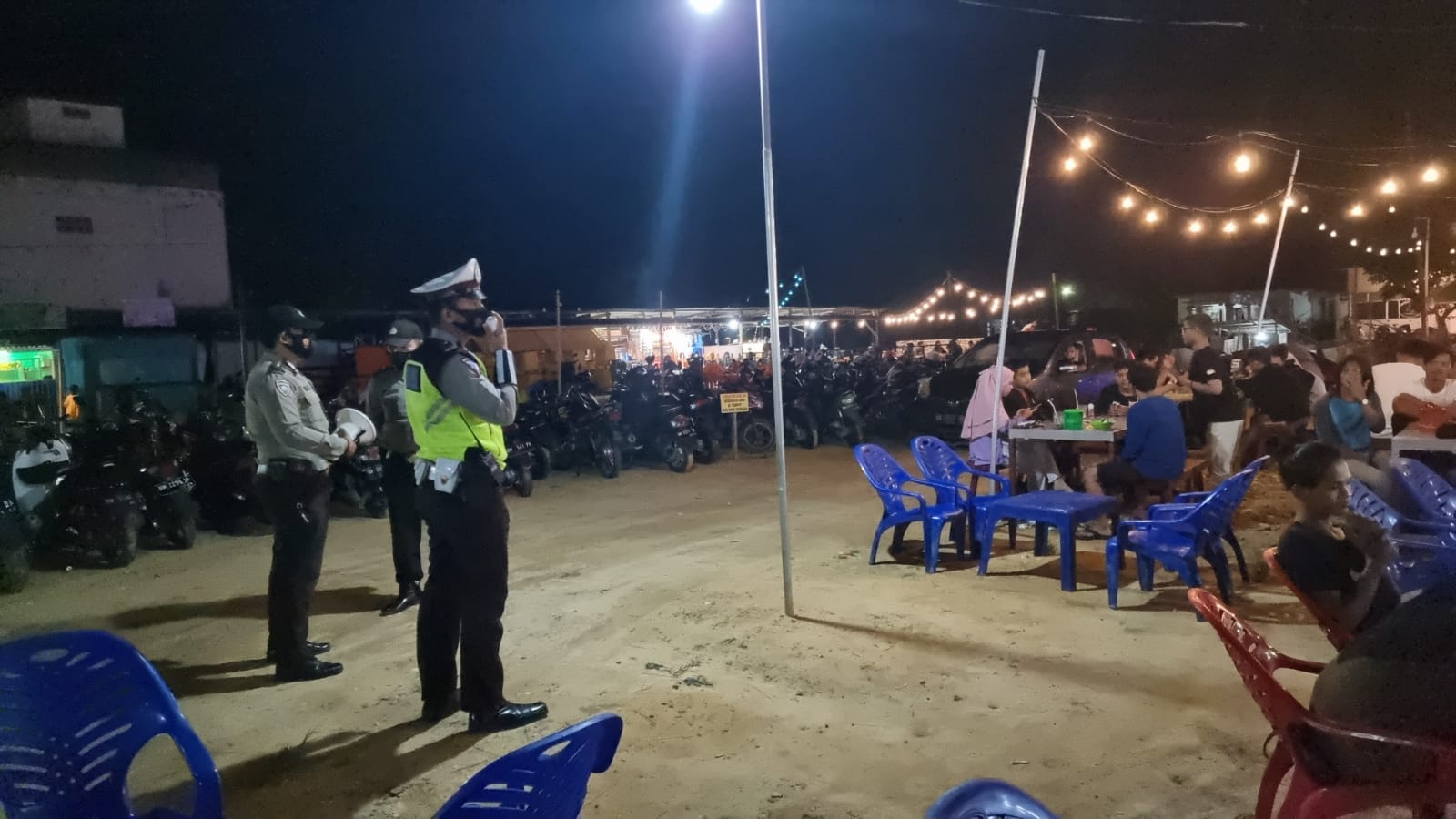 “Giat ini bertujuan untuk mendisiplinkan Prokes masyarakat yang sedang berkunjung di tempat makan seperti angkringan dan cafe,” ujar Aipda Arisman.