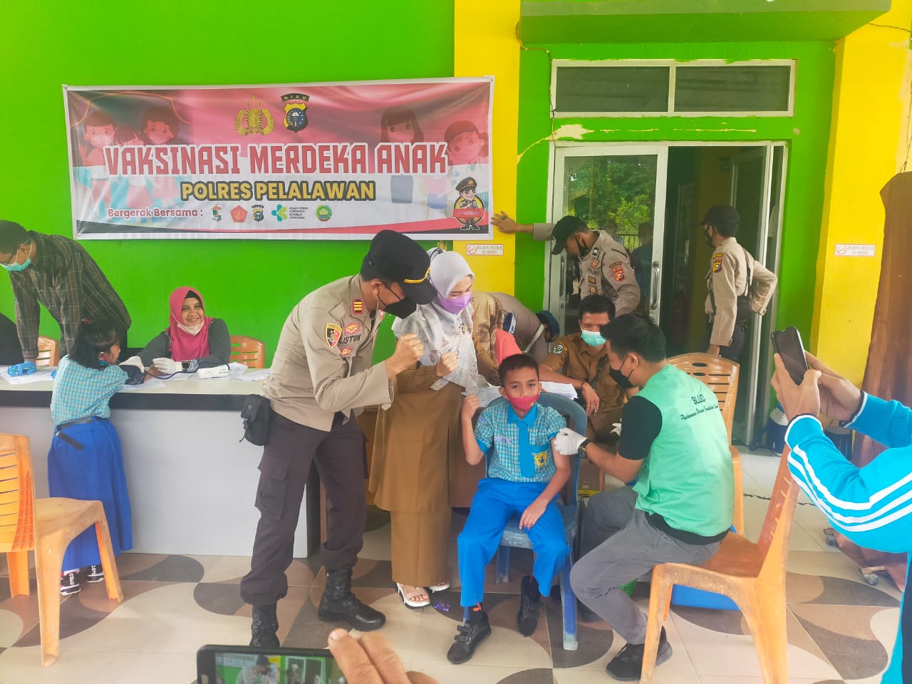 Andapun giat vaksinasi kali ini dilaksanakan di SDS Yayasan Anwar Karim II Estate IV PT Musimmas Kelurahan Pangkalan Lesung, Kecamatan Pangkalan Lesung, Kabupaten Pelalawan, Provinsi Riau.