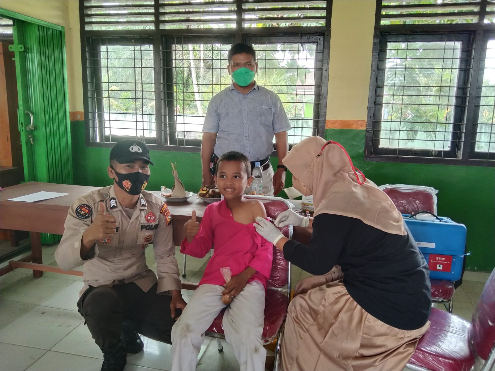 Argoterkini.com – Polsek Ukui, jajaran Polres Pelalawan percepat vaksinasi anak umur 6- 11 tahun bersama Puskesmas Ukui melaksanakan vaksinasi terhadap siswa SDN 001 Ukui dan SDN 010 Desa Silikuan Hulu, Jumat (21/1/2022).