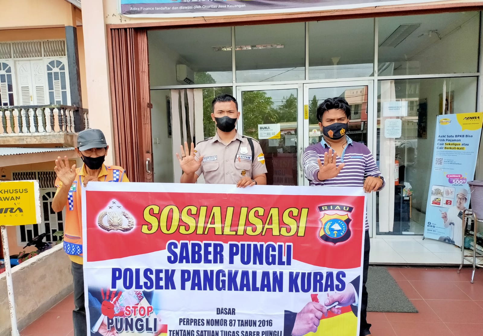 Argoterkini.com – Personil Polsek Pangkalan Kuras, jajaran Polres Pelalawan menyambangi kantor perbankan untuk memberikan sosialisasi terkait sapu bersih pungutan liar (Saber pungli) di wilayah hukum setempat, Jumat (21/1/2022).
