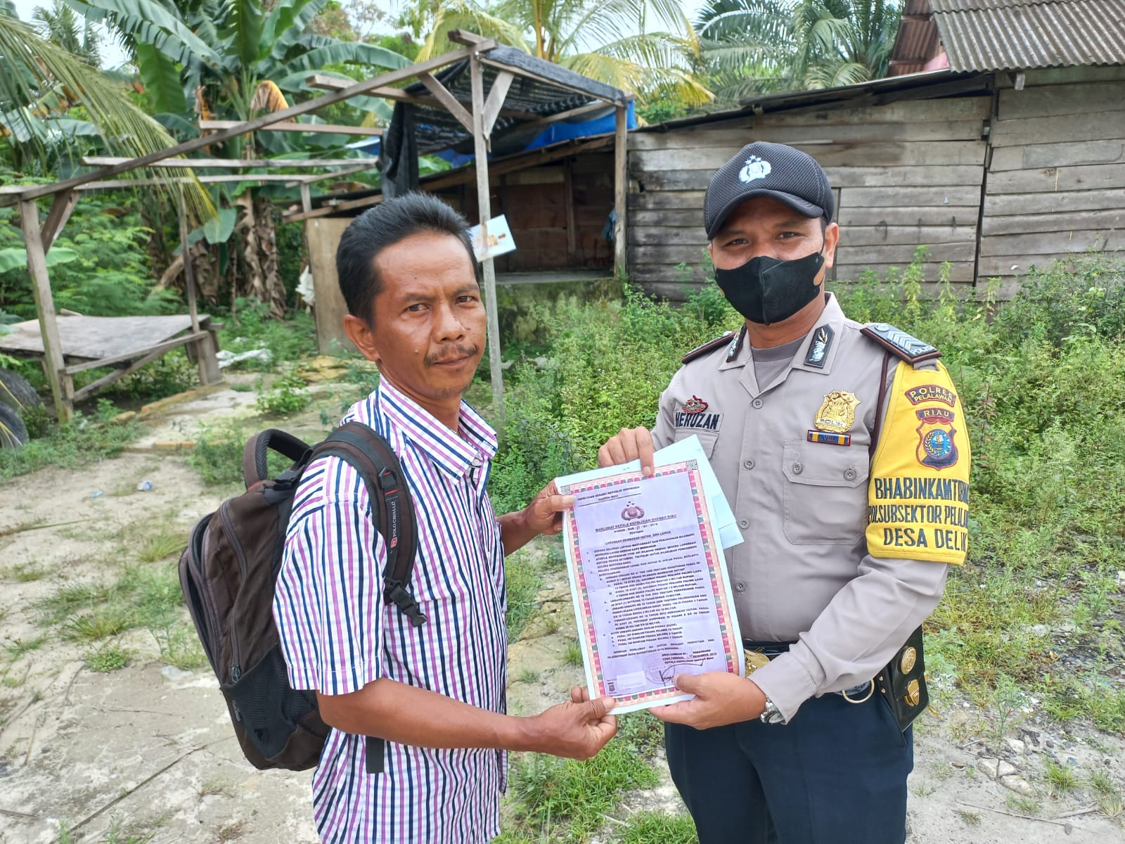 Kegiatan dilakukan Bhabinkamtibmas Desa Delik Bripka Heruzan Nurza, Kecamatan Pelalawan, Kabupaten Pelalawan, Sabtu (22/1/2022).