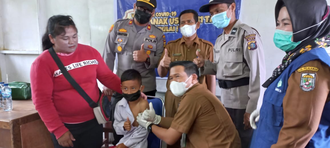 Argoterkini.com – Kapolsek Teluk Meranti Iptu Rahmad Wahyudi melakukan pengamanan pelaksanaan vaksinasi anak Sekolah Dasar yang berusia 6 – 11 tahun.