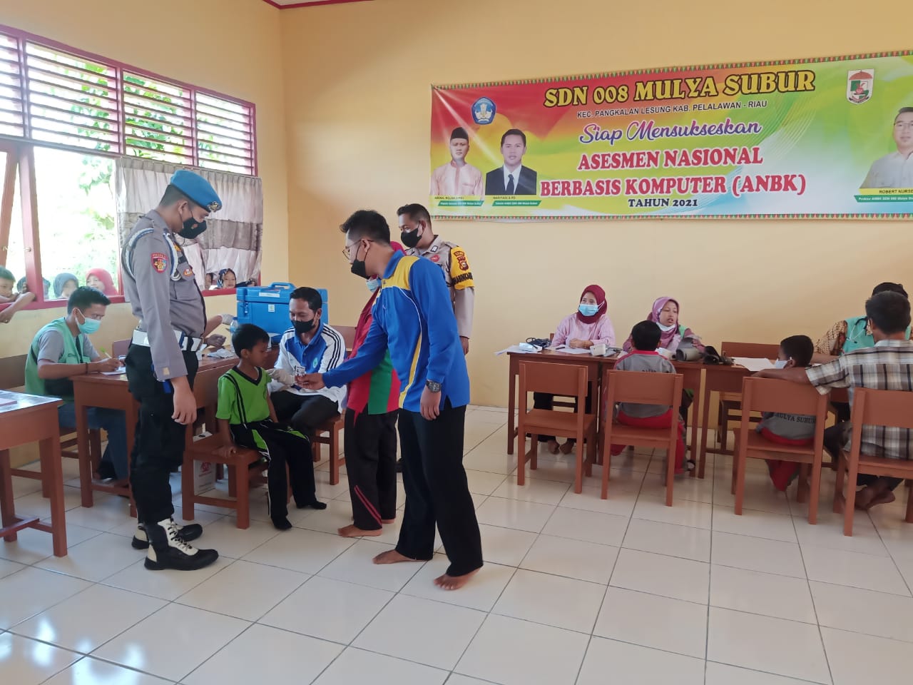 Petugas kali ini menyasar 3 titik lokasi vaksinasi meliputi di SDN 008 Desa Mulya Subur dan Puskesmas Bersinar Kecamatan Pangkalan Lesung Kabupaten Pelalawan, Sabtu (29/1/2022).