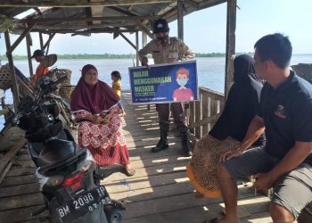 Argoterkini.com - Personil Polsek Teluk Meranti, jajaran Polres Pelalawan Ps Kanit Binmas Bripka H Simanjuntak melakukan pengawasan terhadap penerapan protokol ...